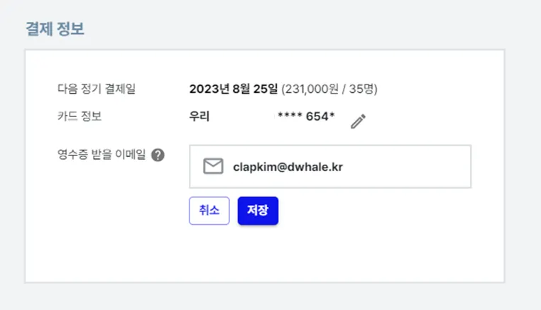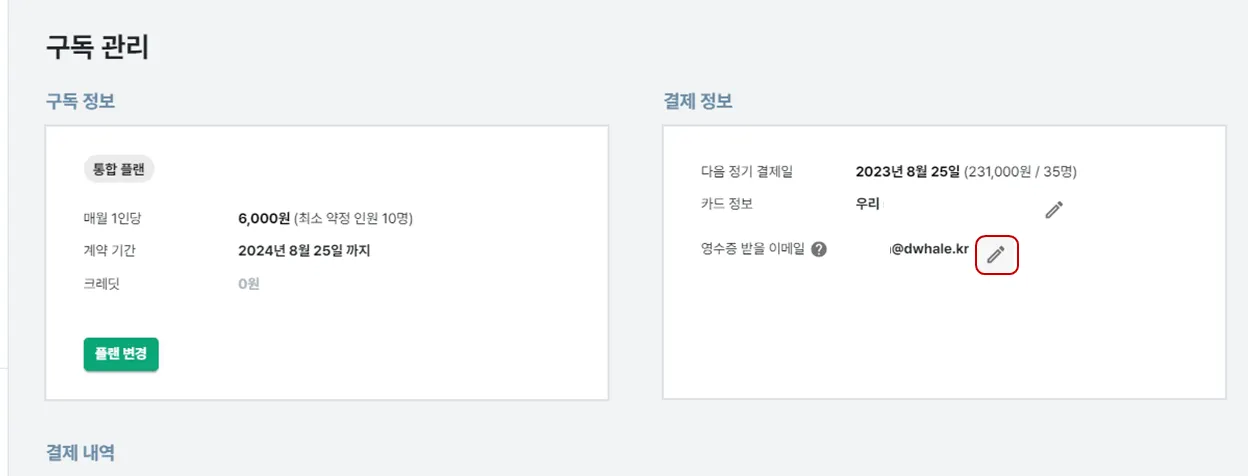 [결제 정보] → 영수증 받을 이메일의 수정 버튼(