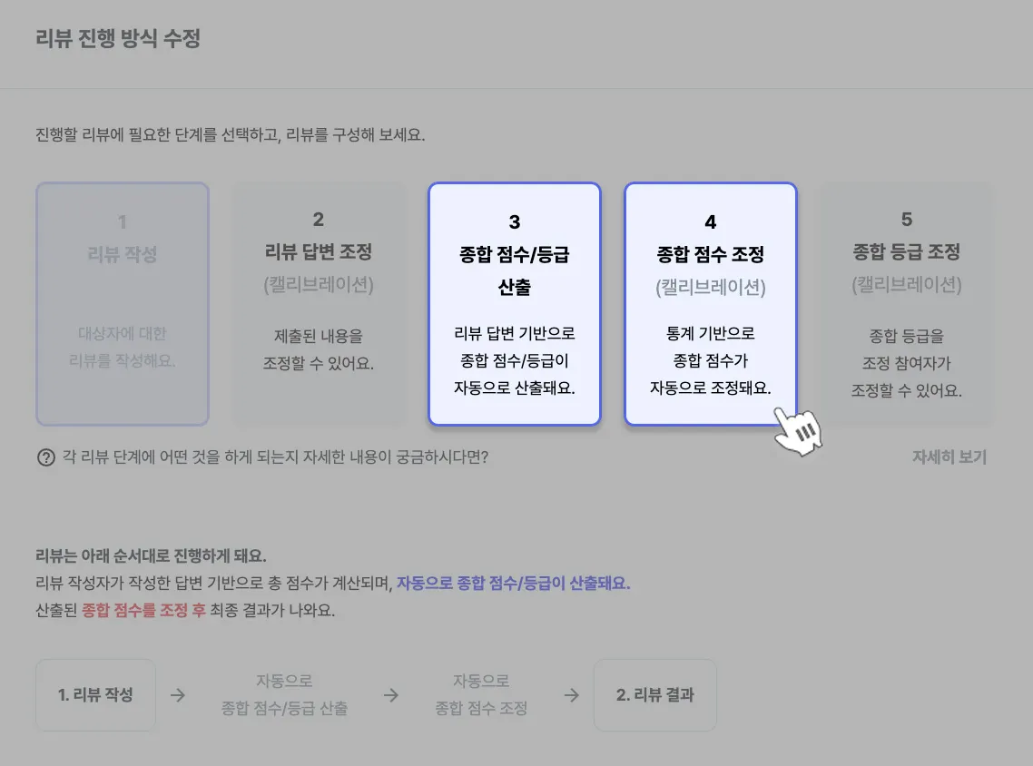 ‘종합 점수/등급 산출’ 단계가 있는 리뷰일 때 선택할 수 있습니다.