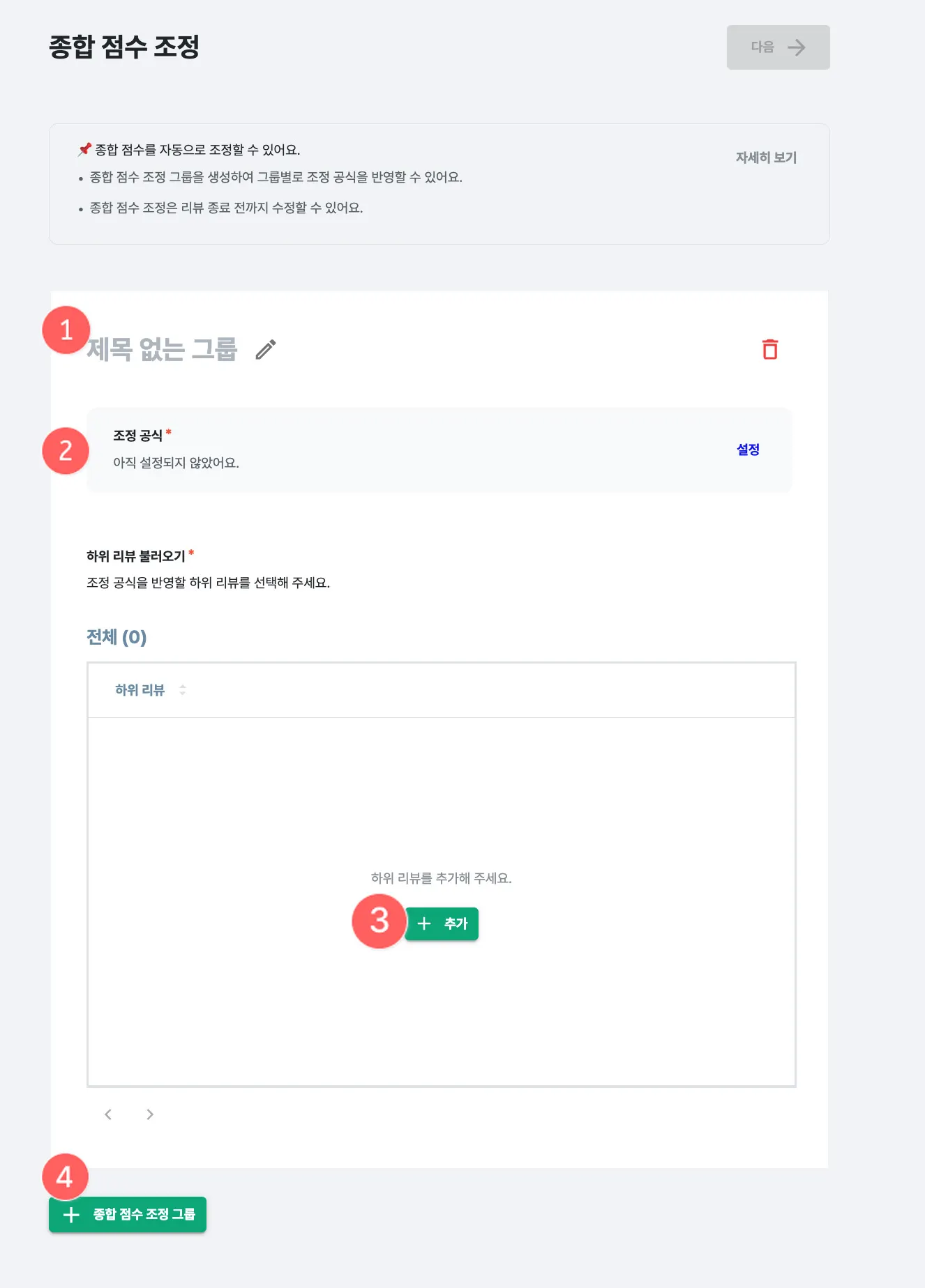 ❹ [+ 종합 점수 조정 그룹] 버튼을 누르면 새로운 그룹을 추가할 수 있습니다.