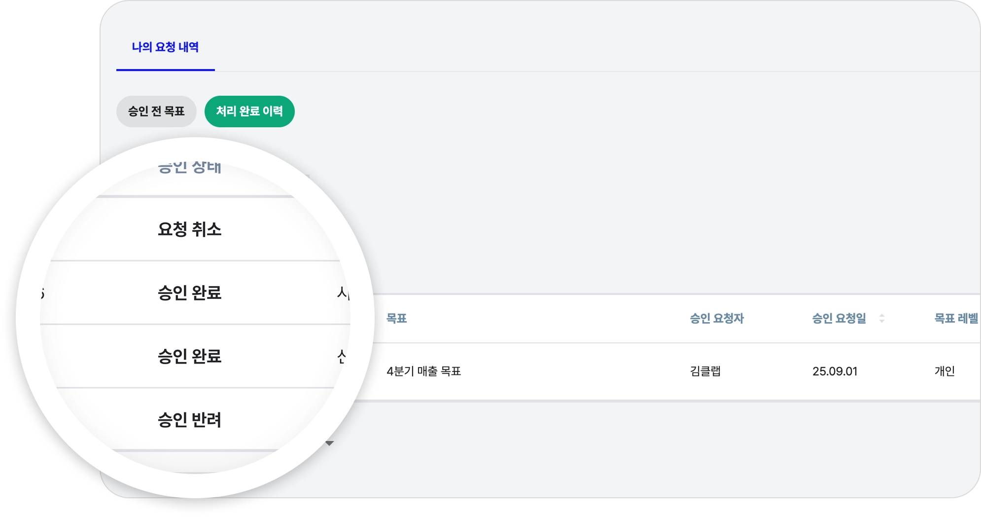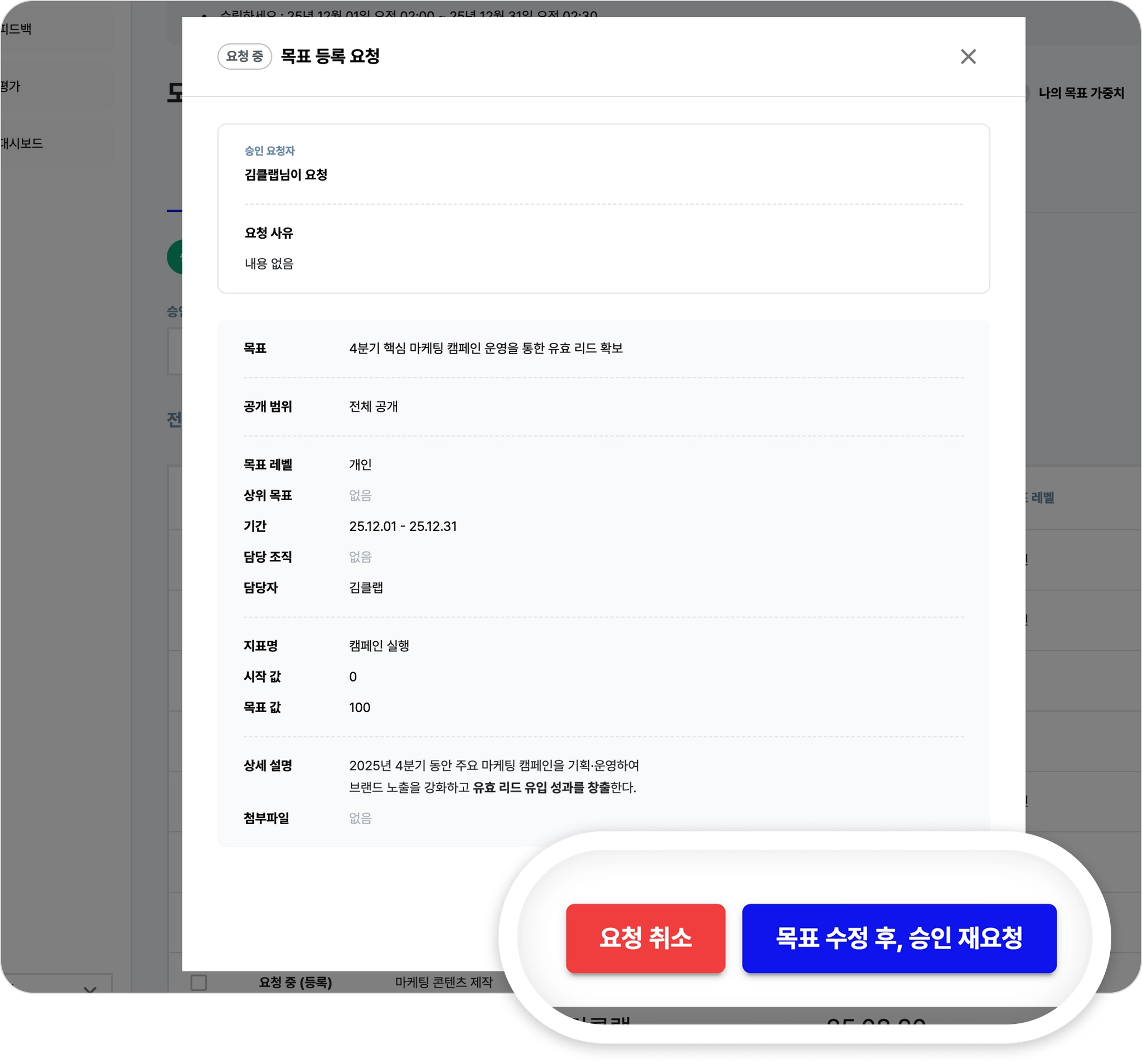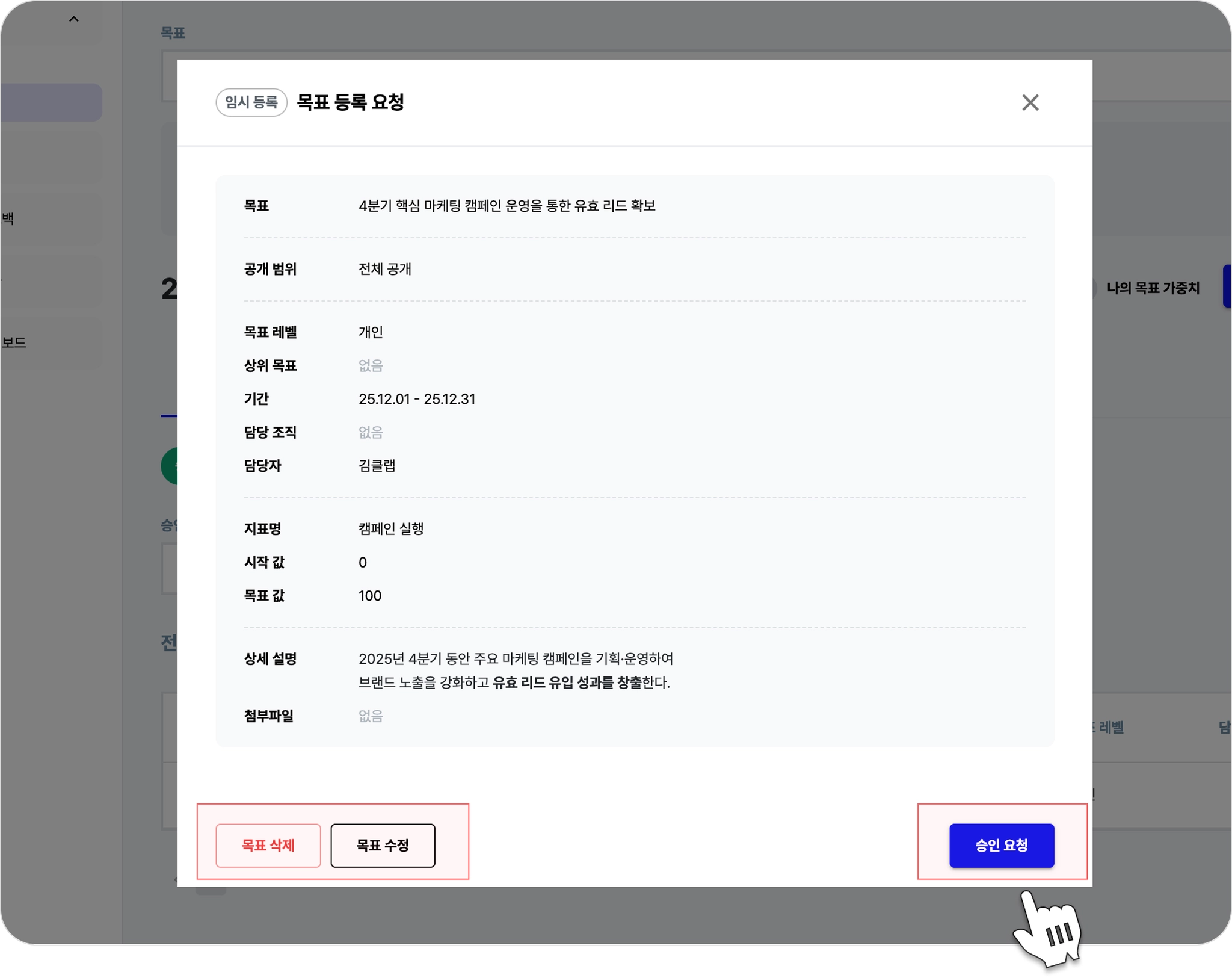 [승인 요청] : 승인 프로세스를 거쳐 목표를 등록합니다.