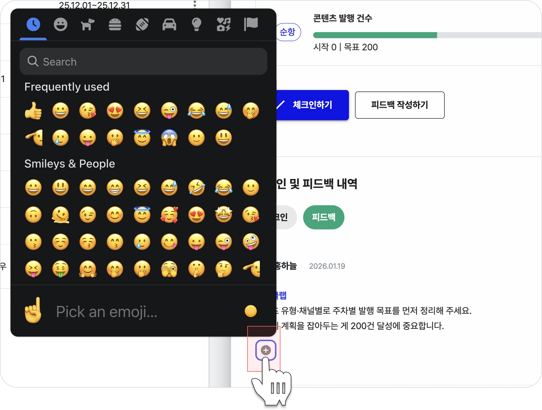 확인한 피드백에 이모지를 클릭해 반응할 수 있습니다.