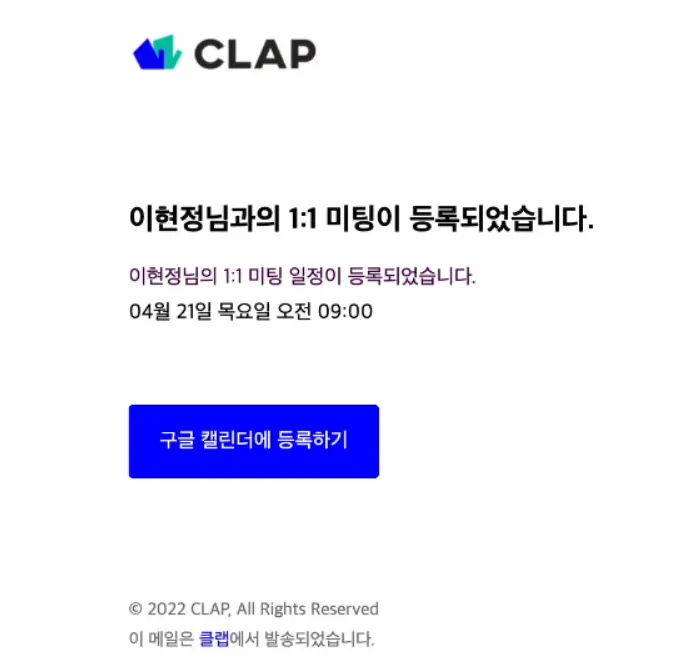 미팅 요청을 받으면 슬랙이나 이메일로 알림이 옵니다.