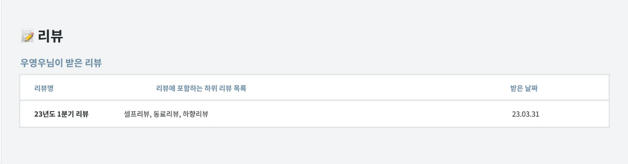 조직에서 진행한 리뷰 중 본인에게 공개된 리뷰만 모아서 보여줍니다.