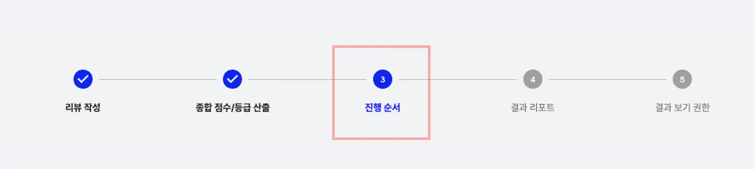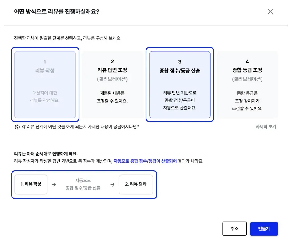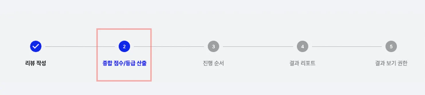 (3) 진행할 리뷰 단계 선택 → ‘종합 점수/등급 산출’ 단계를 선택해 주세요.