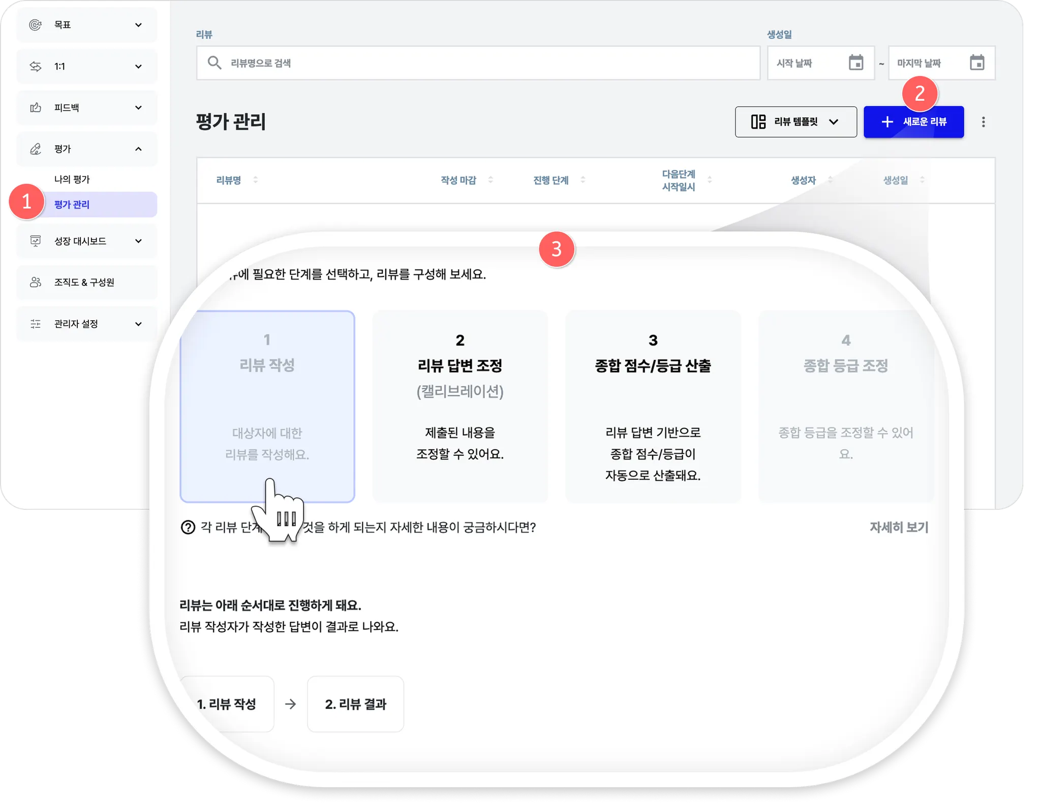 하위리뷰명: 셀프평가, 하향평가 등