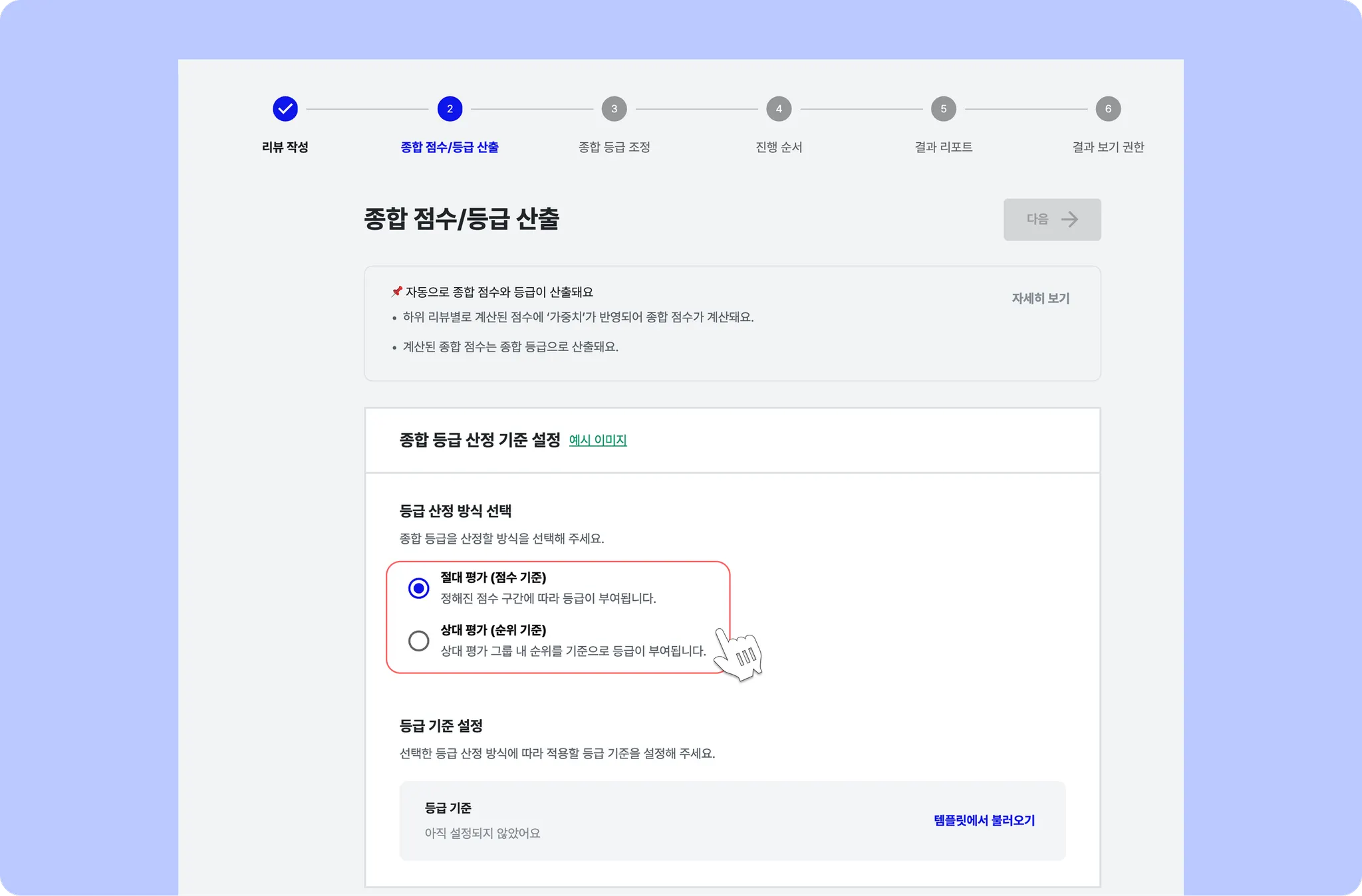 이제 종합 등급을 절대 평가뿐 아니라, 상대 평가기준으로도 산출할 수 있습니다.