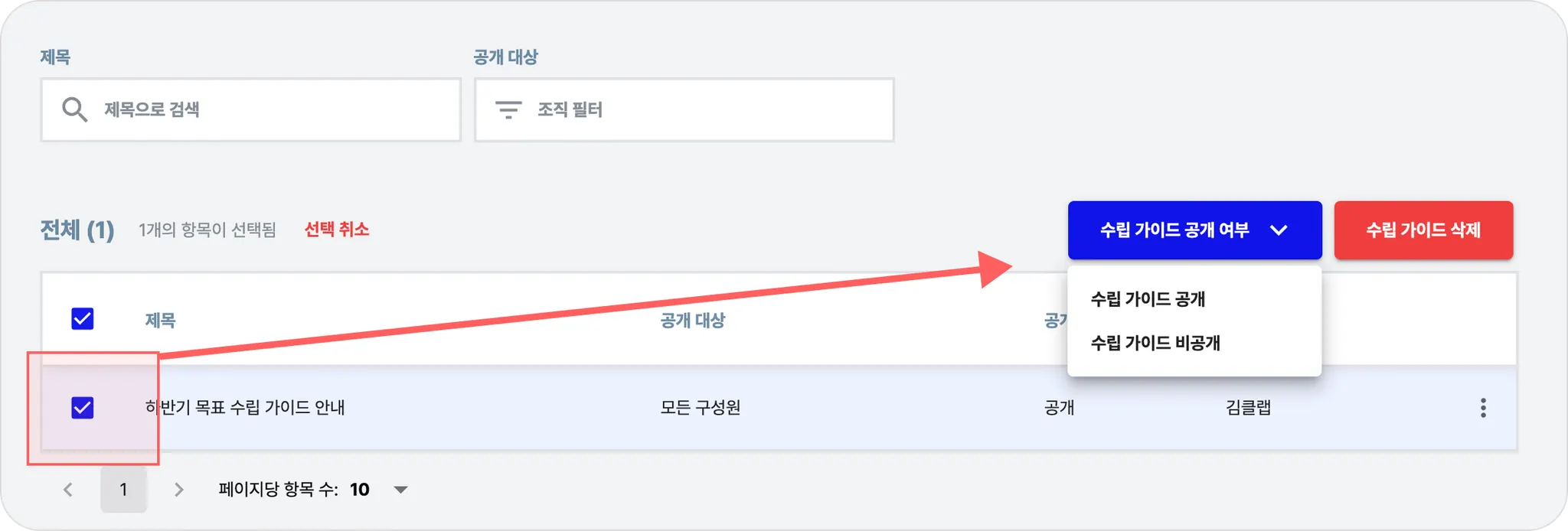 구성원은 본인이 공개 대상에 포함된 가이드만 보여집니다.