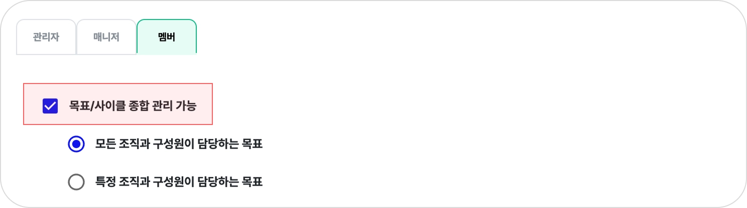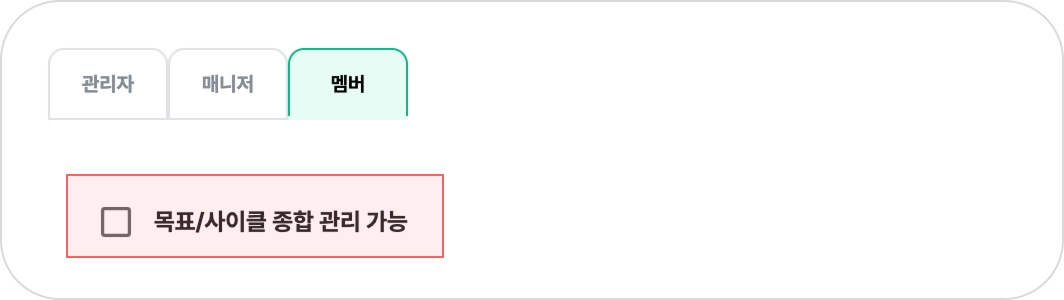 멤버는 워크스페이스 내 모든 조직/구성원을 기준으로 목표 관리 어드민 권한이 적용됩니다.