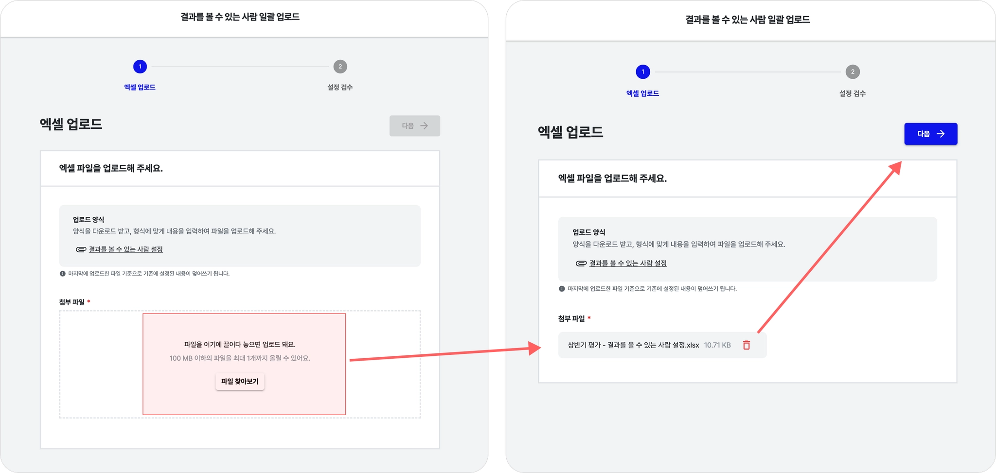 (1) 엑셀 업로드 화면에서 ‘결과를 볼 수 있는 사람 설정’ 파일을 다시 다운로드합니다.