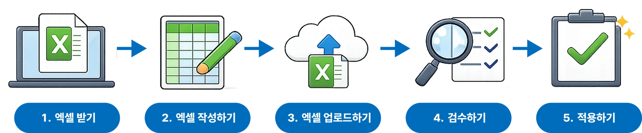 엑셀 일괄 업로드 과정을 단계별로 안내드립니다. 순서에 따라 확인해 주세요!