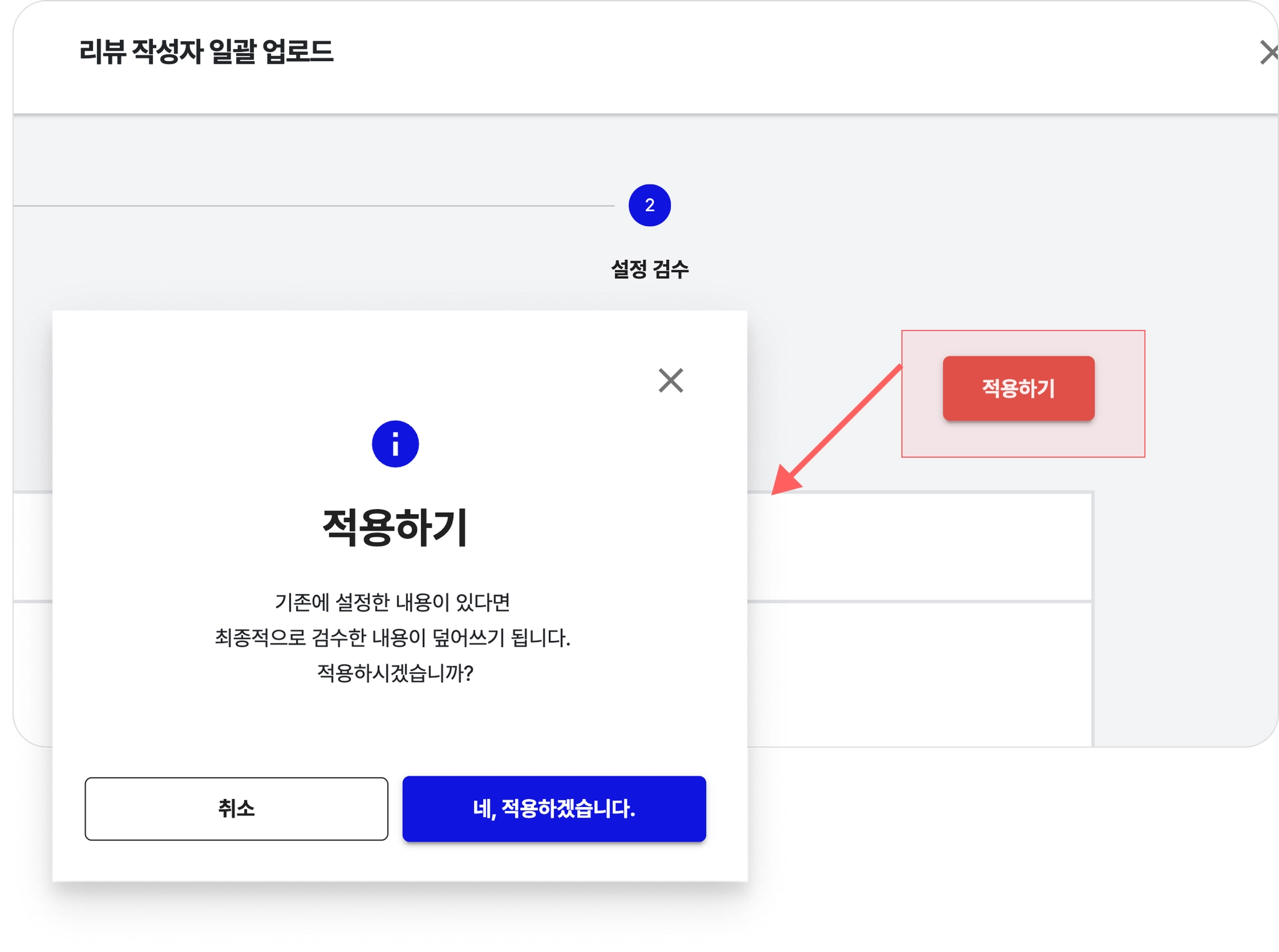 (1) 검수 단계에서 [적용하기] 버튼을 클릭합니다.