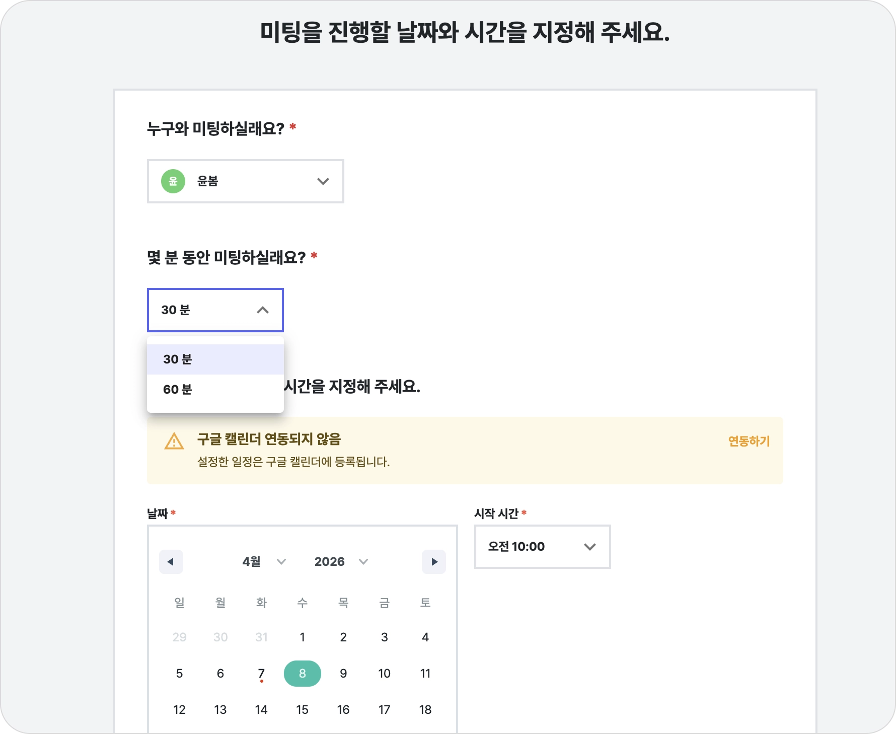 미팅 시작 시간: 4월 8일 오전 10시