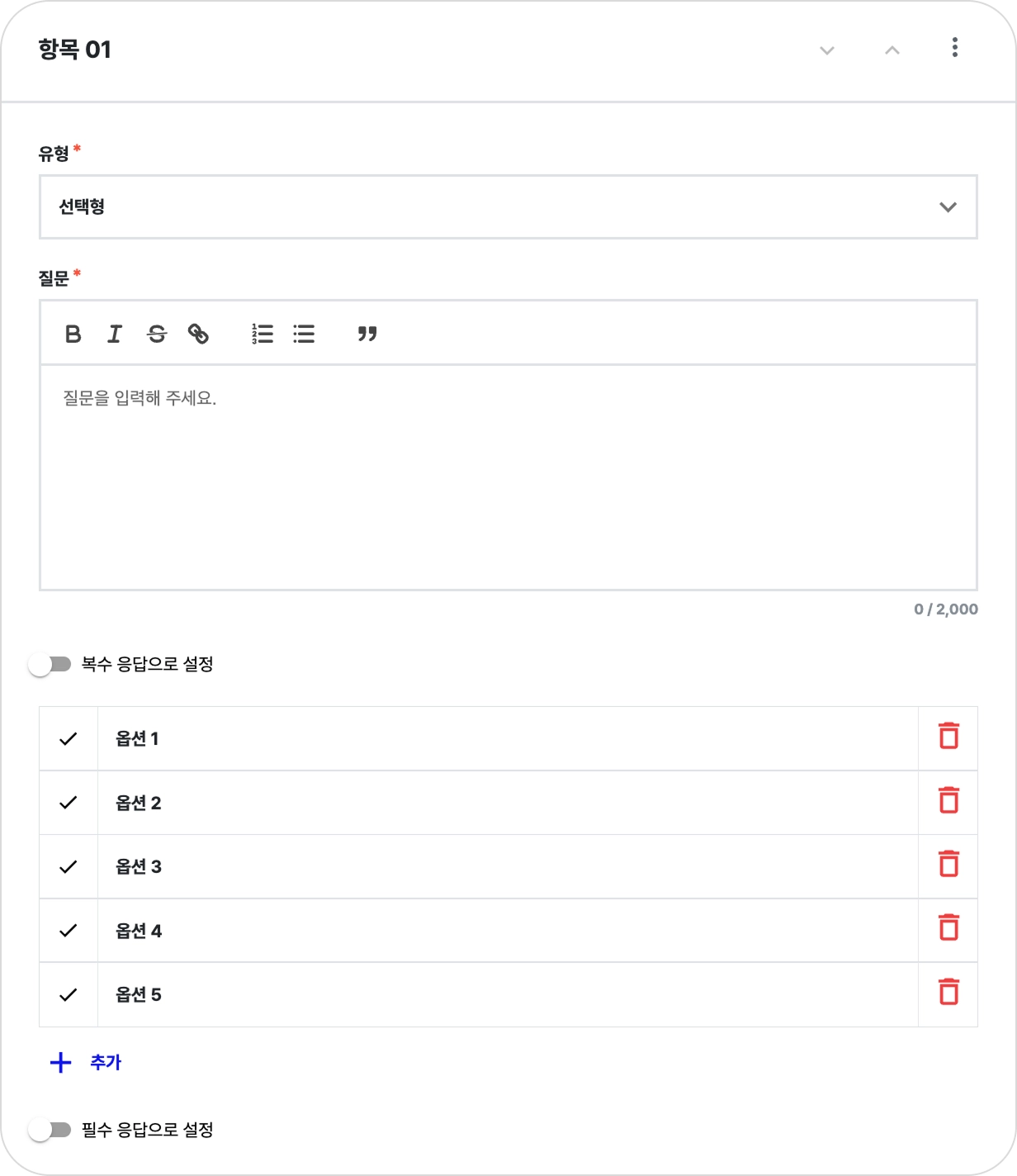 옵션란에 구성원이 선택할 보기 문항을 입력합니다.