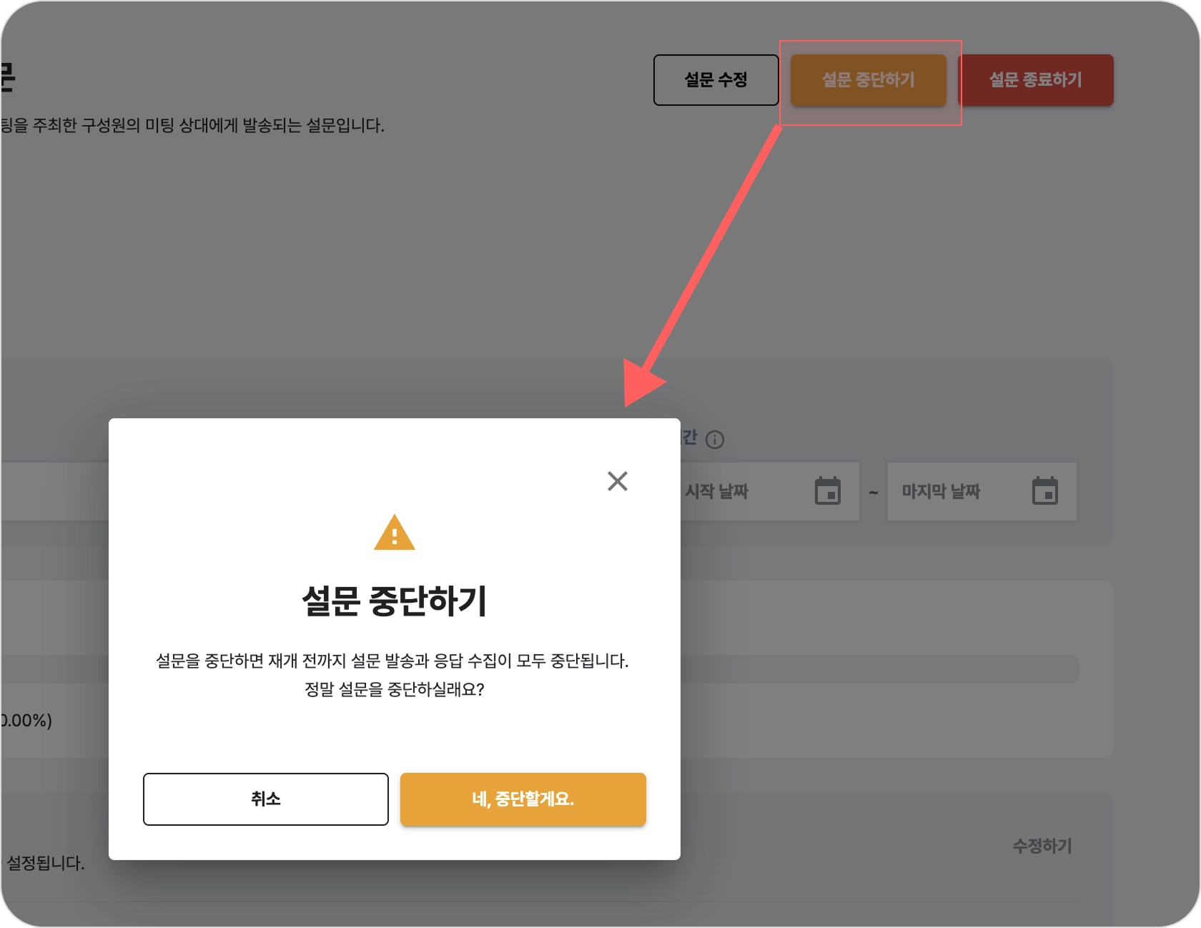 설문 내용을 수정하거나 운영 방식을 변경하기 전 잠시 멈추고 싶을 때