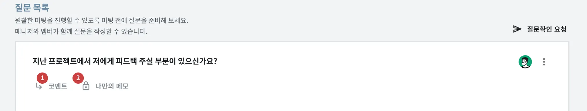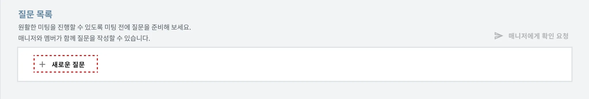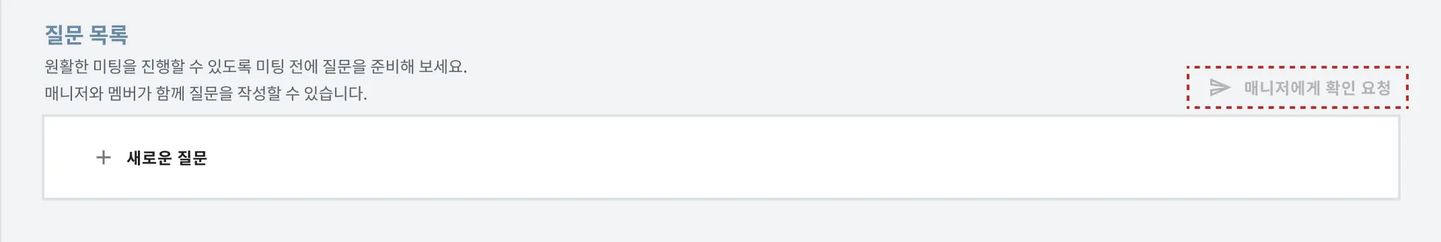 [ 매니저에게 확인 요청 ] 을 눌러 사전에 공유하고 싶은 질문을 미리 알려줄 수 있어요.