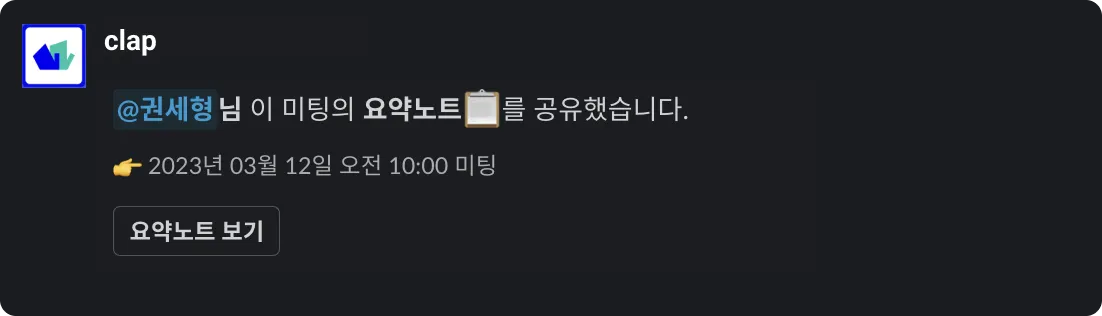 조직의 상위 리더 등 특정 구성원에게 미팅 노트 공유가 필요할 때 활용해 보세요.