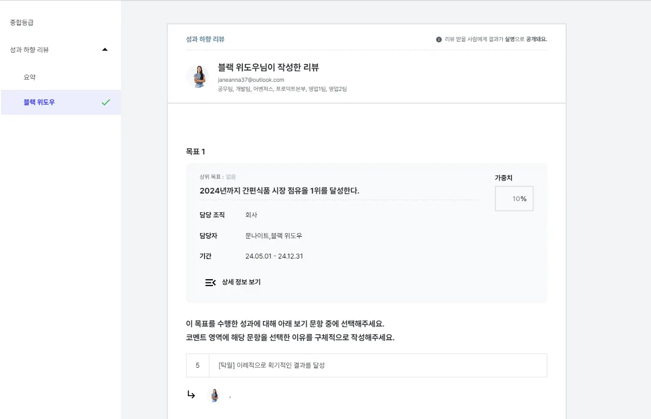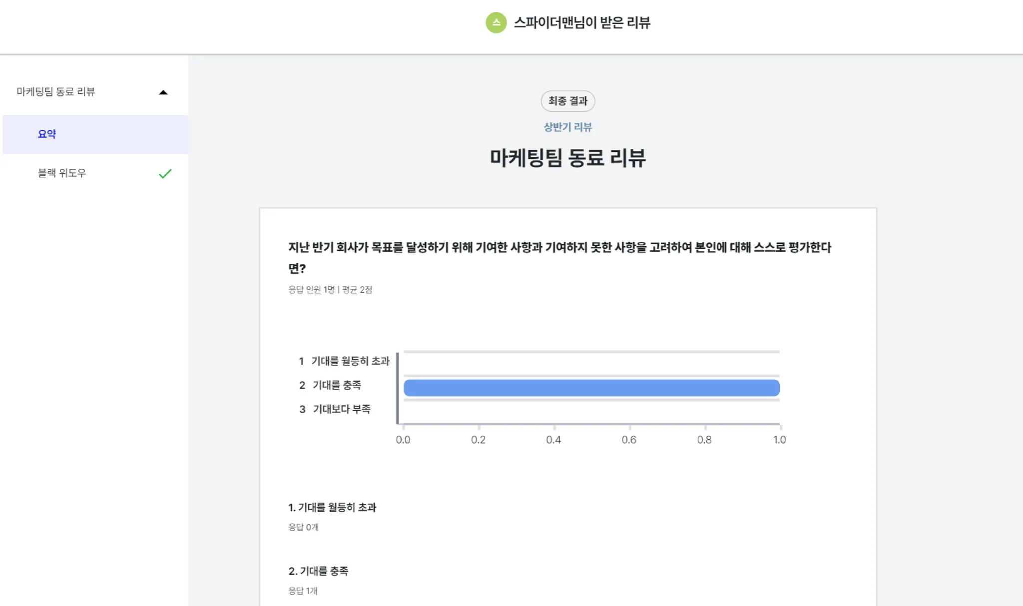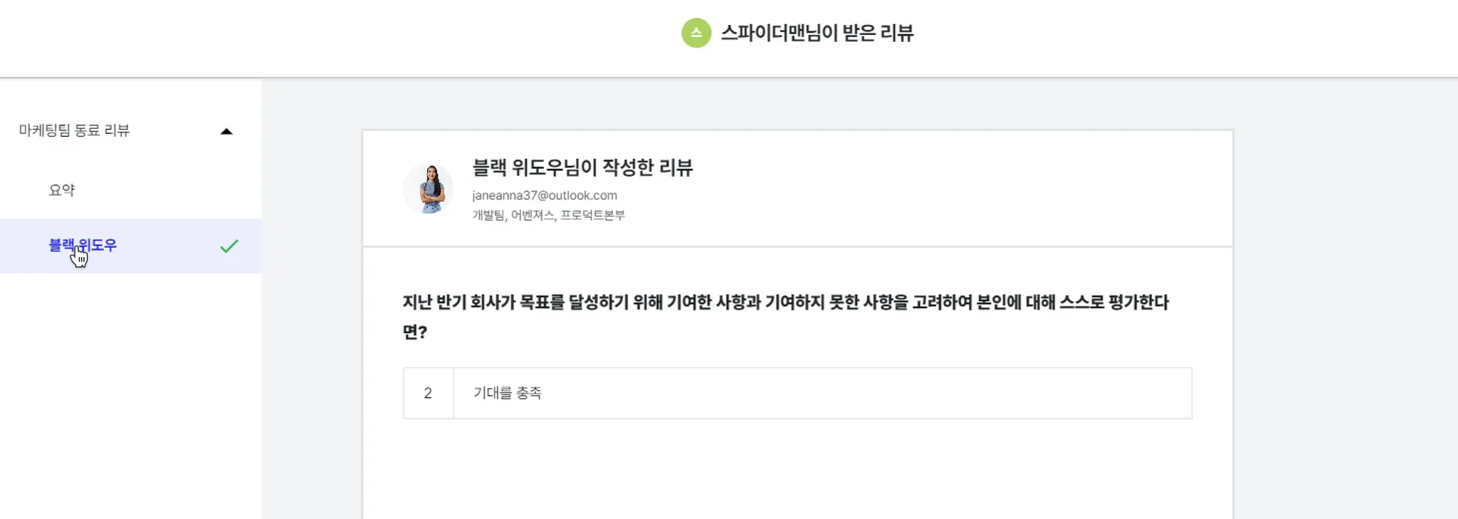 *리뷰 운영자가 열람 권한을 부여하지 않은 경우 조직도상 매니저여도 리뷰 결과를 확인할 수 없어요.