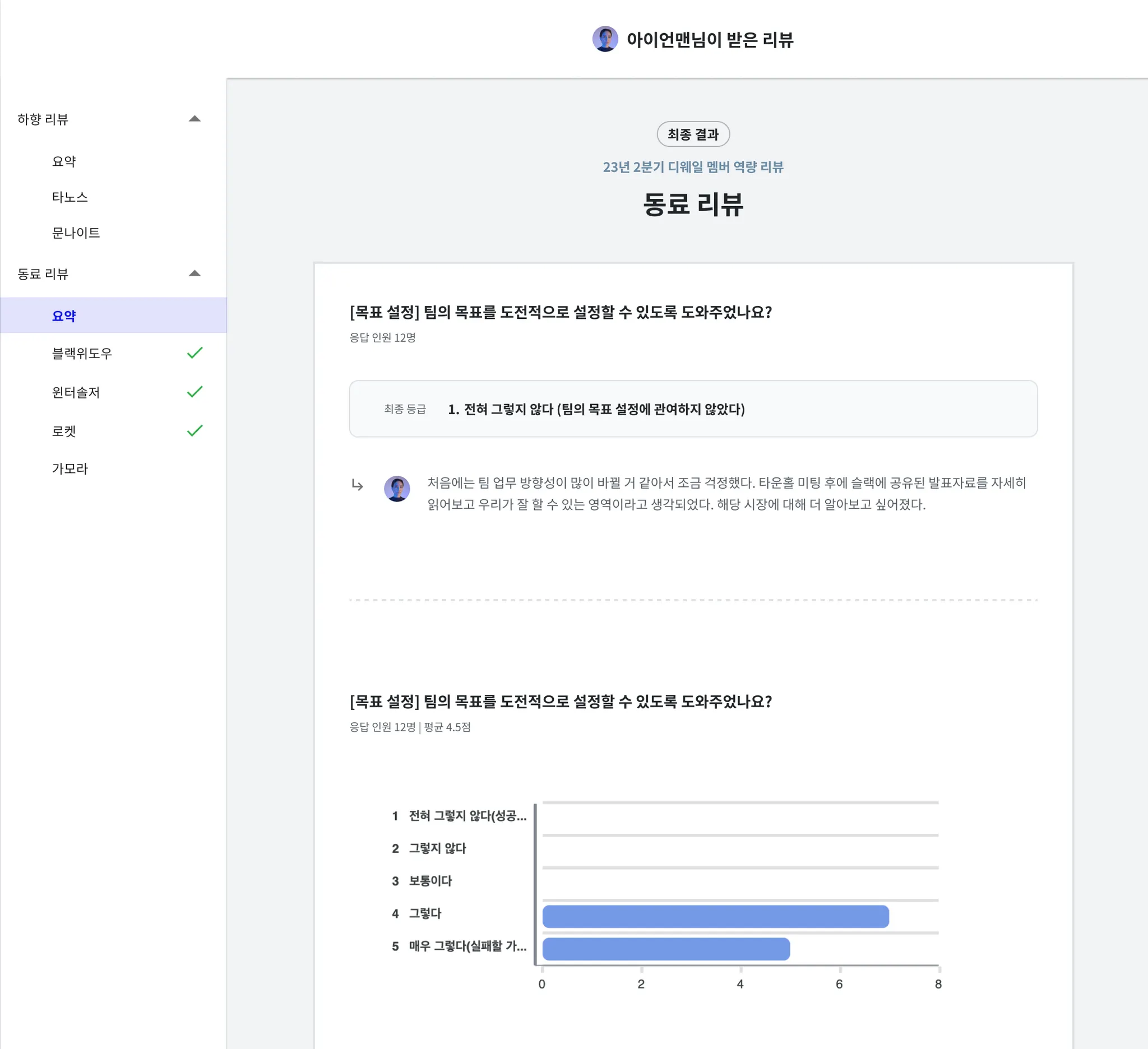리뷰 열람 권한이 있는 매니저는 멤버의 리뷰 결과를 확인할 수 있어요.