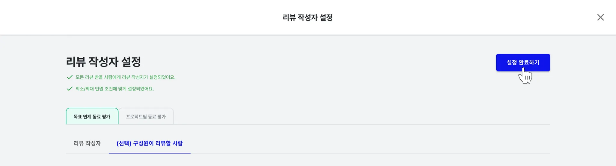 작성자를 모두 지정하신 후 화면 우측 상단의 [설정 완료하기] 를 눌러 설정을 마무리 해주세요.
