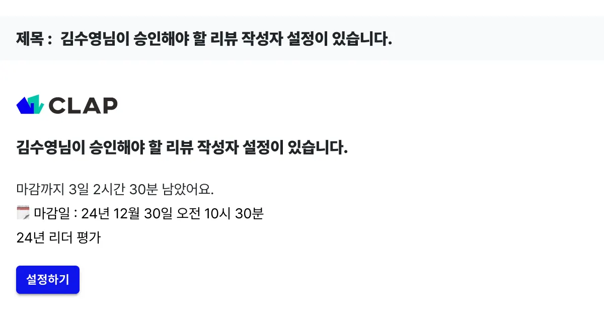 승인 기간이 시작되면 승인 대상자는 승인 요청 알림을(이메일&슬랙) 받게 돼요.