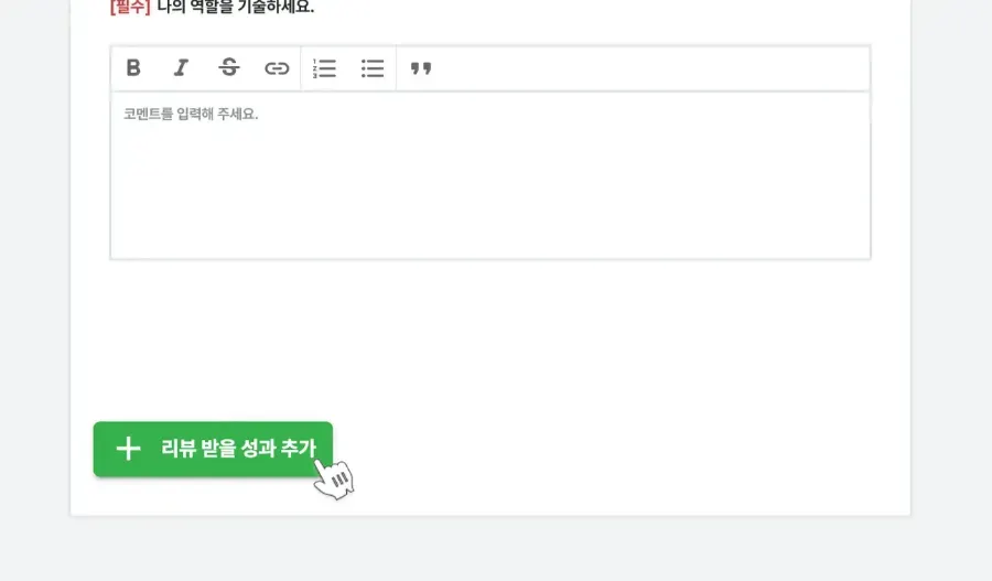 성과를 추가하면 리뷰 질문 문항이 제공됩니다. 질문에 맞춰 작성해주세요.