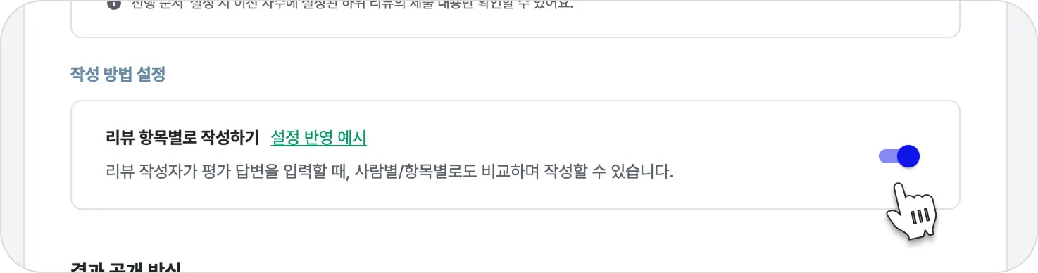 리뷰 결과 조회 화면에 표시할 방식을 선택할 수 있어요.