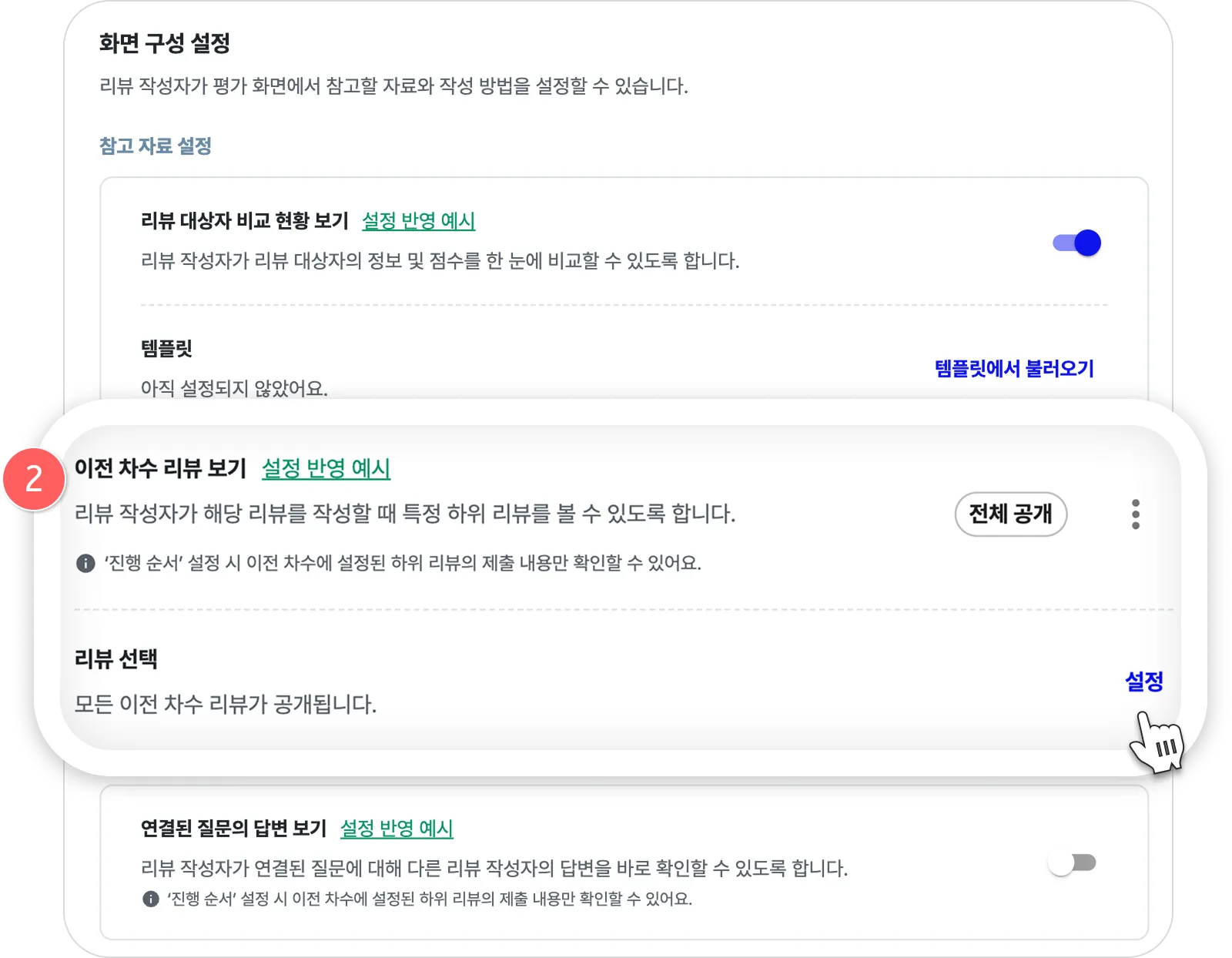 이렇게 설정하면 2차 리뷰 작성자는 이전 차수 리뷰(참고자료) 화면에서