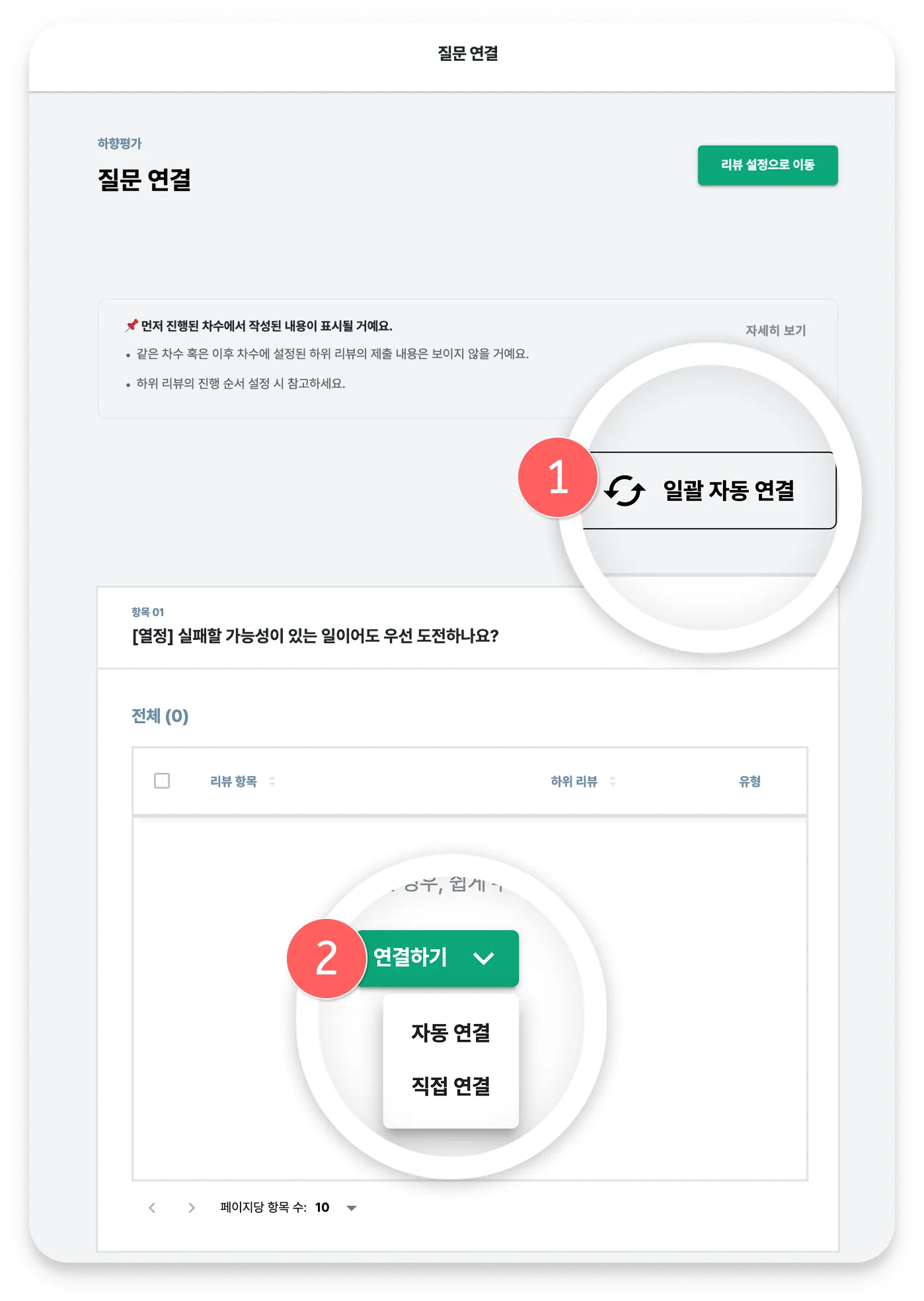 해당 하위 리뷰의 질문 조건을 설정합니다.