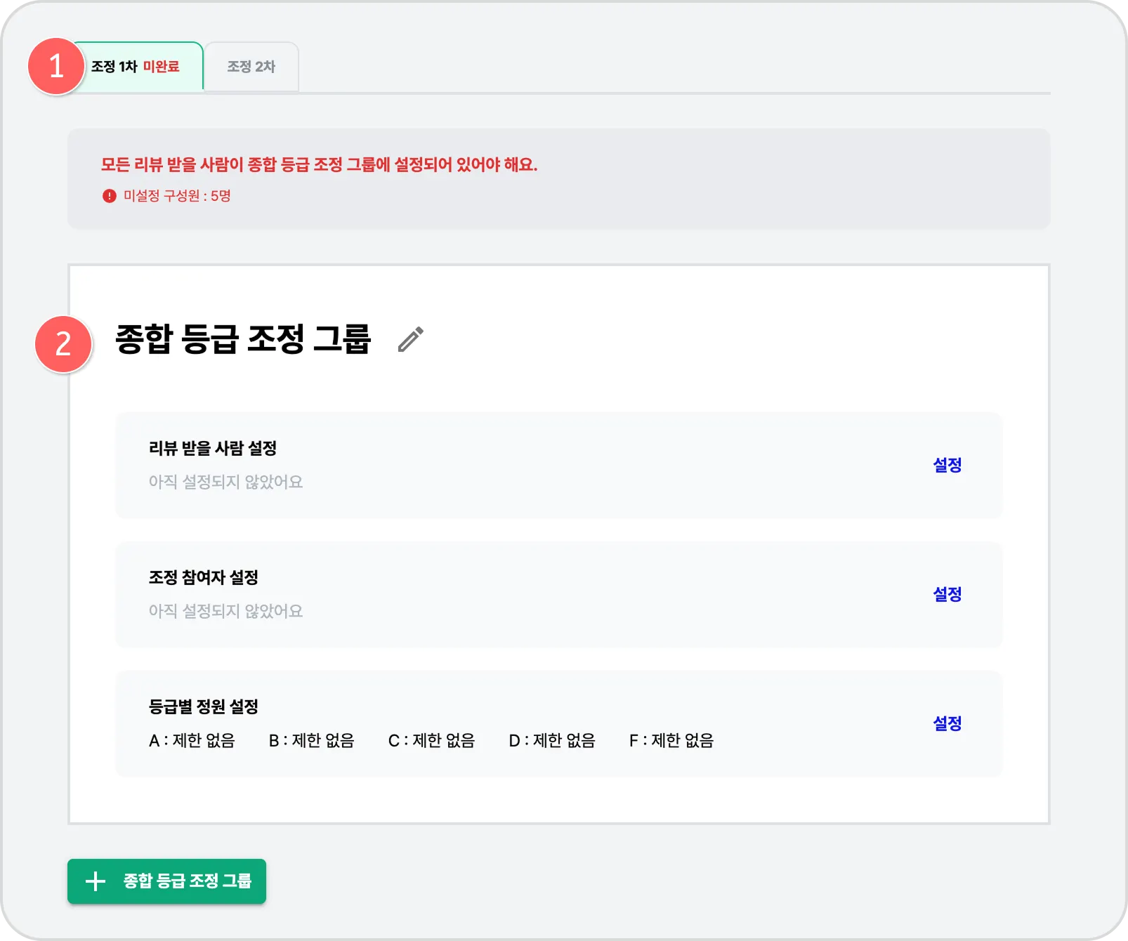 화면 하단 [+ 종합 등급 조정 그룹] 버튼을 눌러 새로운 그룹을 추가할 수 있습니다.