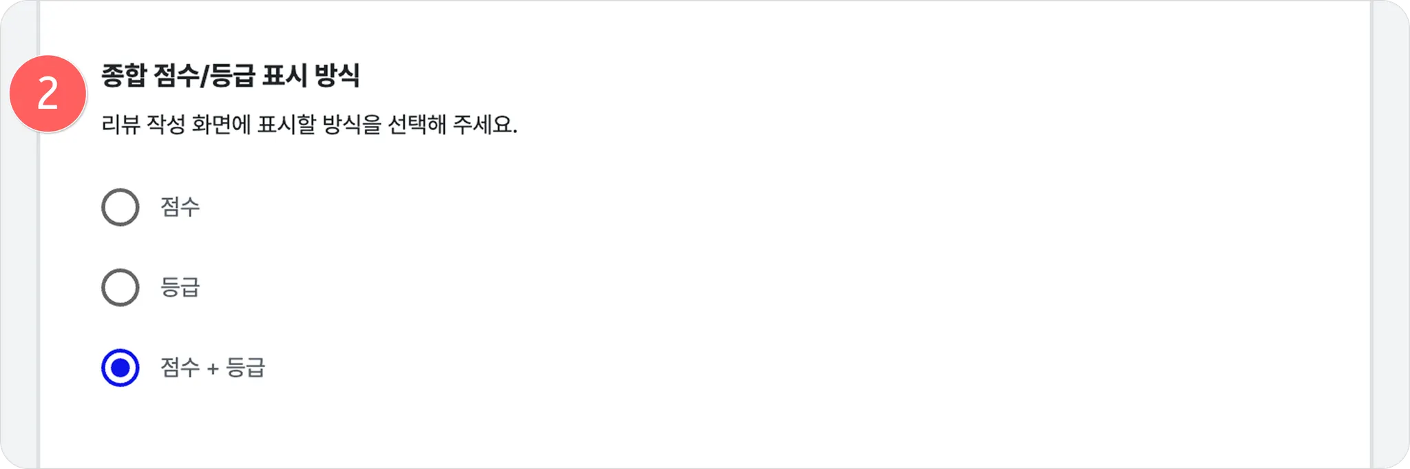 선택 옵션: (1) 점수만 / (2) 등급만 / (3) 점수 및 등급 모두 표시