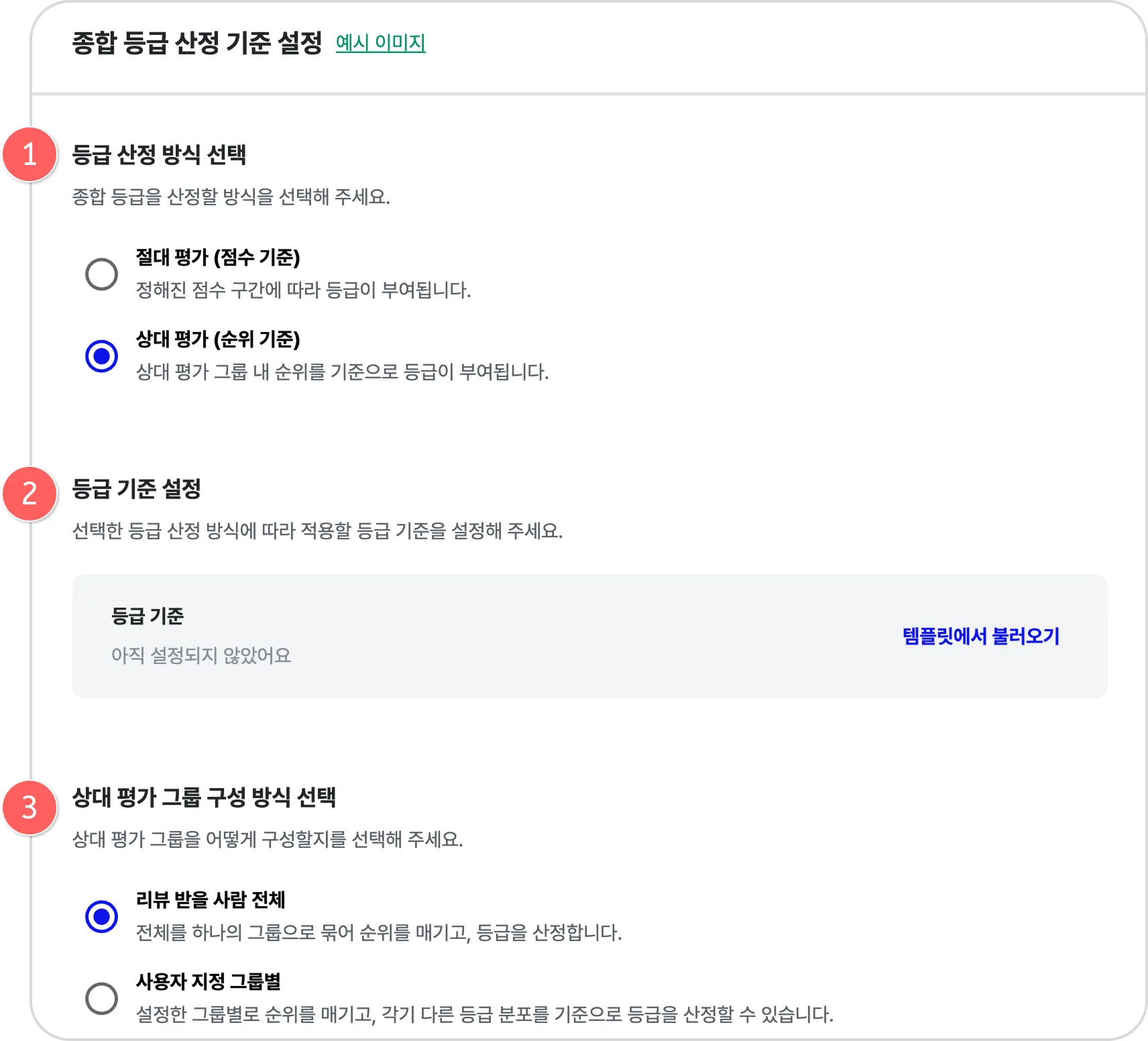(3) 상대 평가 그룹 구성 방식 선택 (상대평가를 선택한 경우에만 설정 가능)