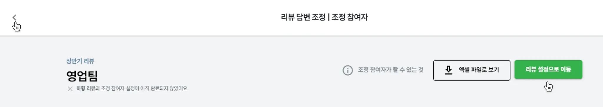 설정 클릭하여 리뷰 작성자(평가자)를 지정하세요.