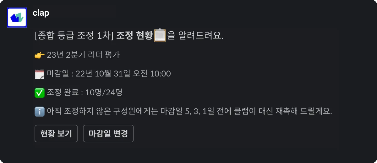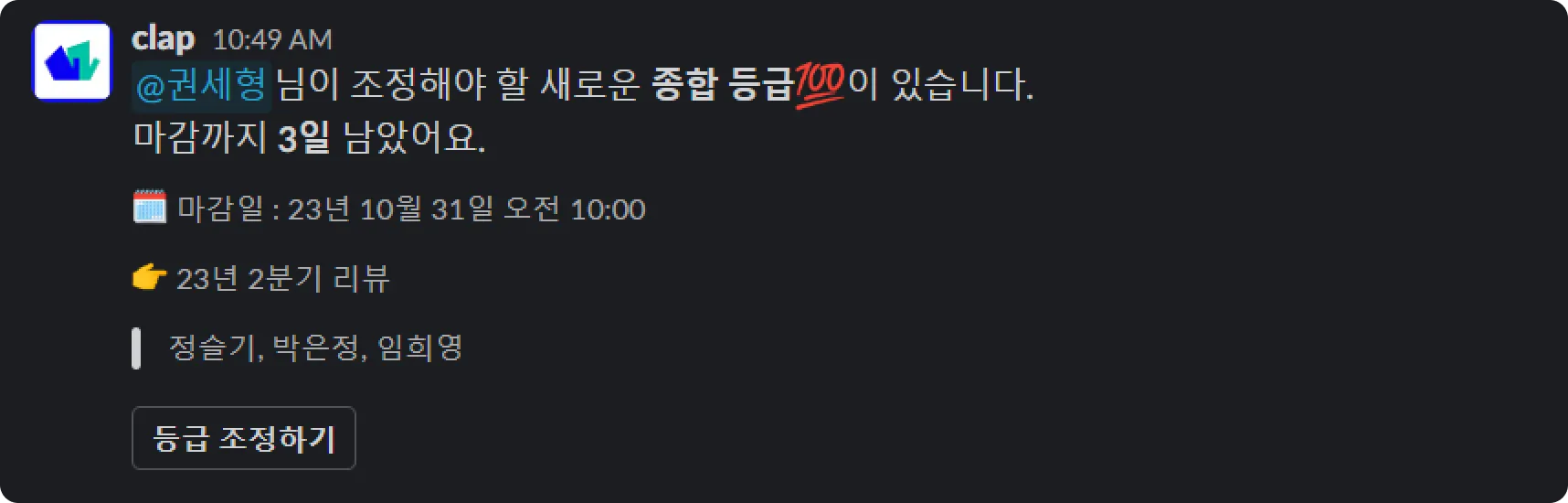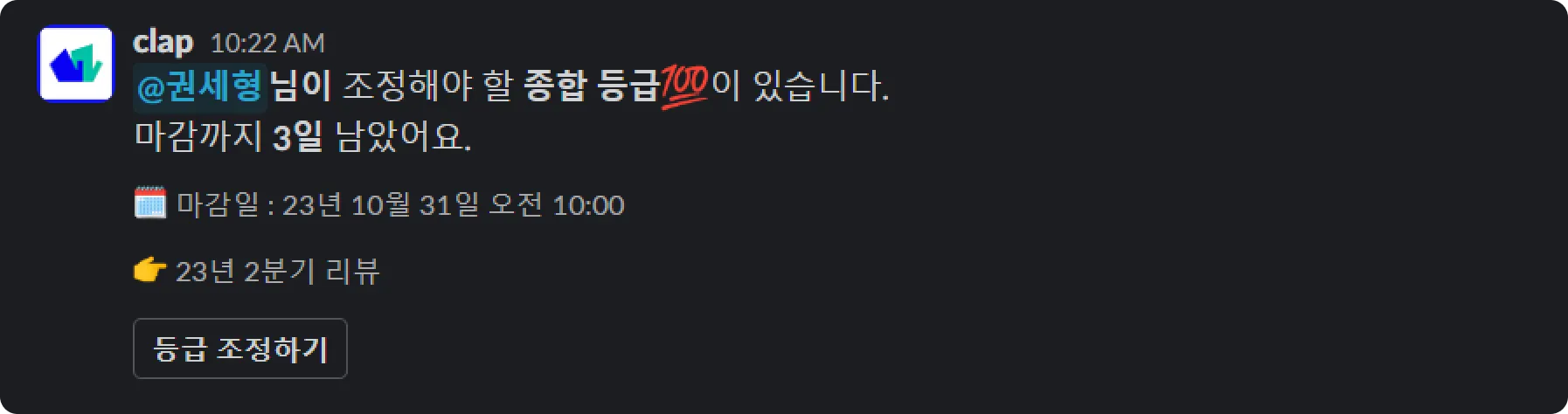 종합 등급 조정 완료율이 100%가 되면 알림을 받음