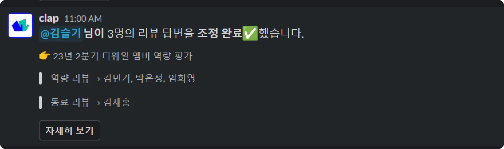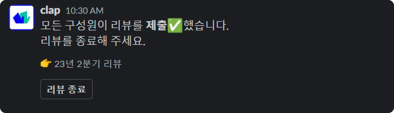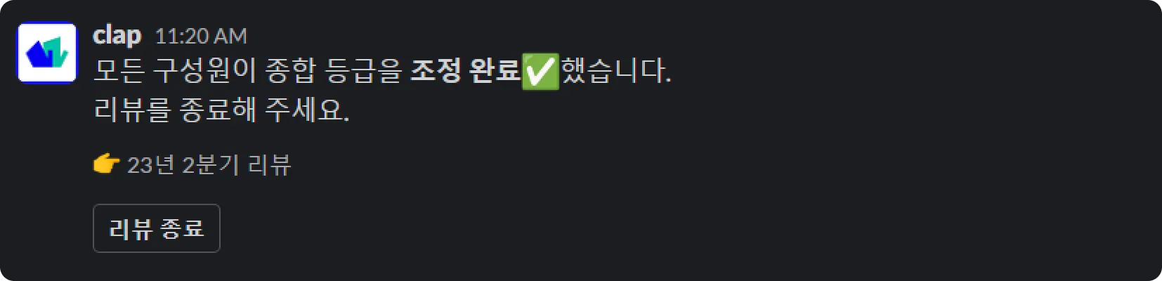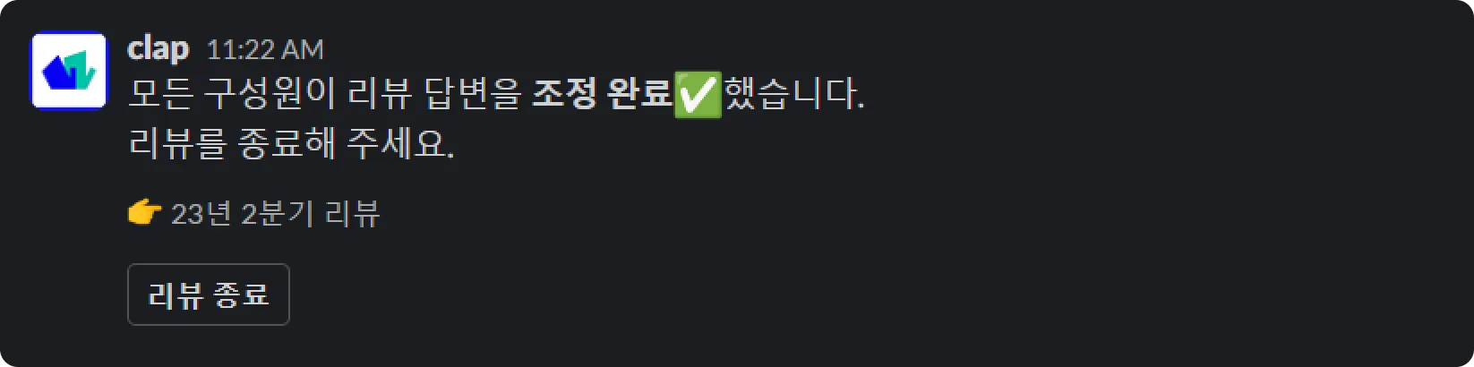 종료 처리 시, 리뷰 결과 조회 권한이 있는 사람은 결과 조회 알림을 받게 돼요.