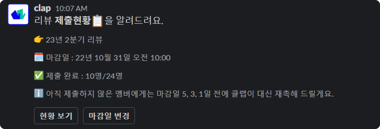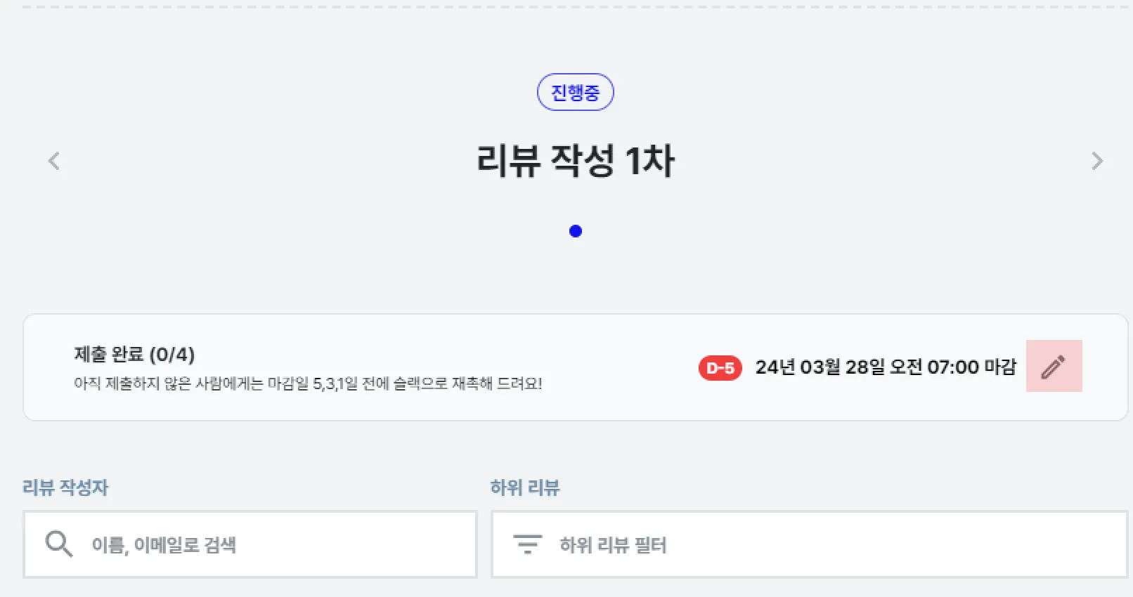 리뷰 마감일 5, 3, 1일 전에 제출 현황 알림을 받음