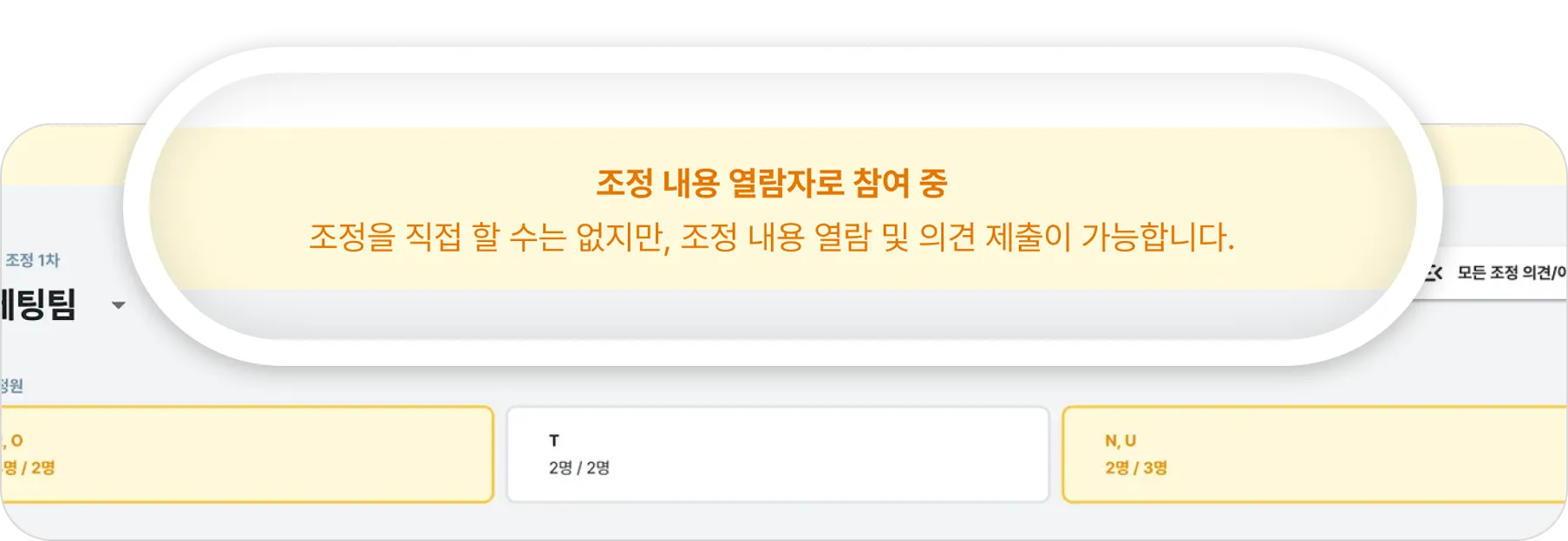 조정 열람자로 참여하는 경우, 조정 화면 상단에 열람자 권한으로 보고 있음을 안내하는 문구가 표시됩니다.