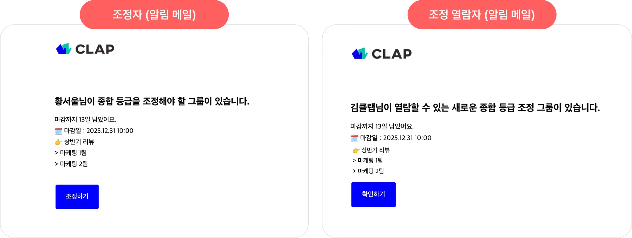 또는 클랩 좌측 메뉴 [나의 평가] > [종합 등급 조정 N차] 항목을 클릭해 종합 등급 조정 화면으로 입장합니다.